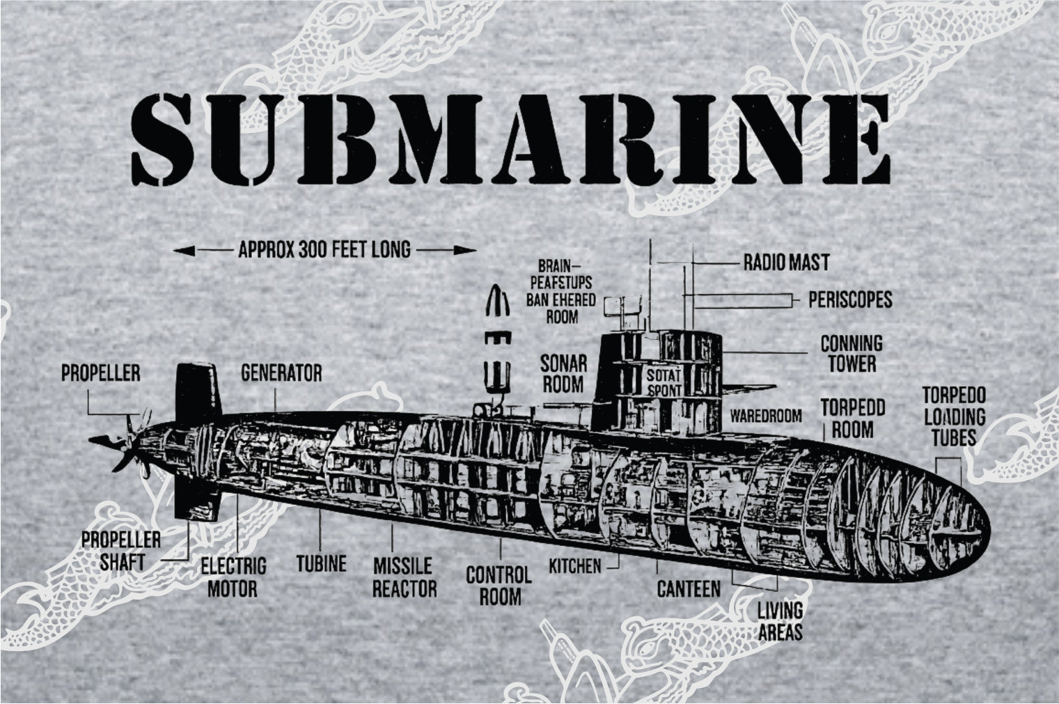 Printed with the featured graphic on the front, these Custom-Made in the U.S.A. Submarine T-Shirts, Long Sleeve shirts, Crew Sweatshirts and Hoodies.