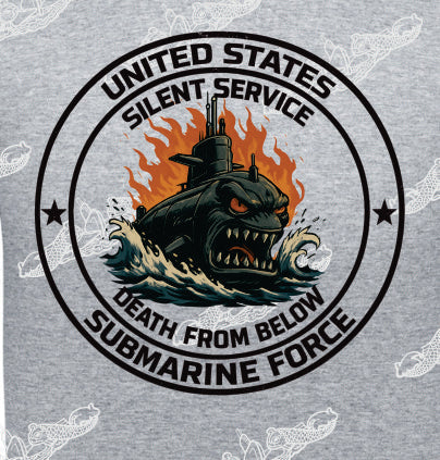 Printed with the featured graphic on the front, these Custom-Made in the U.S.A. Submarine T-Shirts, Long Sleeve shirts, Crew Sweatshirts and Hoodies.
