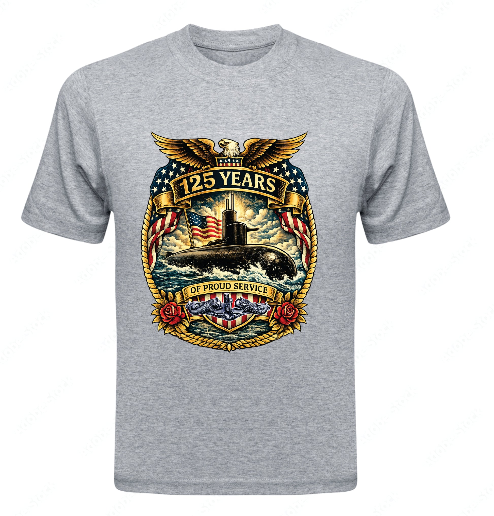 Honor the Stars & Stripes with an American Flag (with or without dolphins) on your left sleeve, and celebrate 125 Years of the Silent Service with our anniversary emblem on your right sleeve.